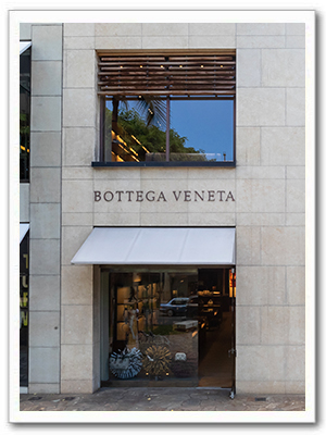Bottega Veneta在4800平方英尺的新建店面中经营着全系列的男女成装、手提包、珠宝、鞋、皮具和桌布。Bottega Weneta于1966年创建于意大利威尼斯附近,现在该品牌已跻身于世界高档商品之列。在创意才子Tomas Maier的带领和启发下,今天的Bottega Veneta 已成为优雅得体和卓越品质的代名词。